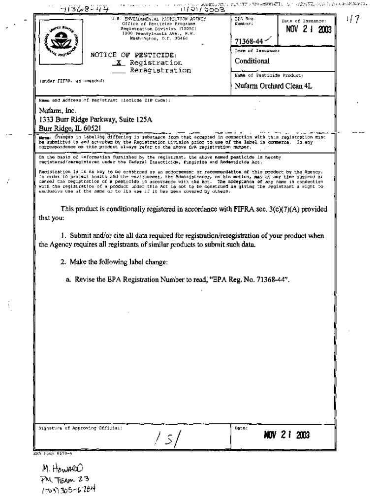 , ,,\', \”., \'\':\”.:\'LI\'\”\'\'\'\'\'\' \'. :\',11/;;1/ oo3u.s.ENVIRONMENTAL PROTECTION AGENCYOffice of Pesticide Programs Registration Division (7505C) 1200 Pennsylvania Ave., N.W. Washington,