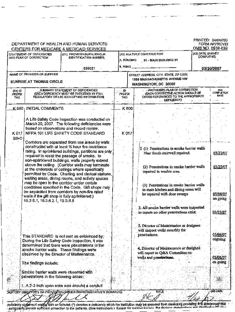 ..., ×.×., ...:_... :__.:.;_.....PRINTED: 04/U4J200 FORM APPROVE!DEPARTMENT OF HEALTH AND HUMAN SERVICES CENTERS FOR MEDICARE & MEDICAID SERVICES STATEMENT OF DEFICIENCIESOMBN.038., .039 (X2) MULTIPLE