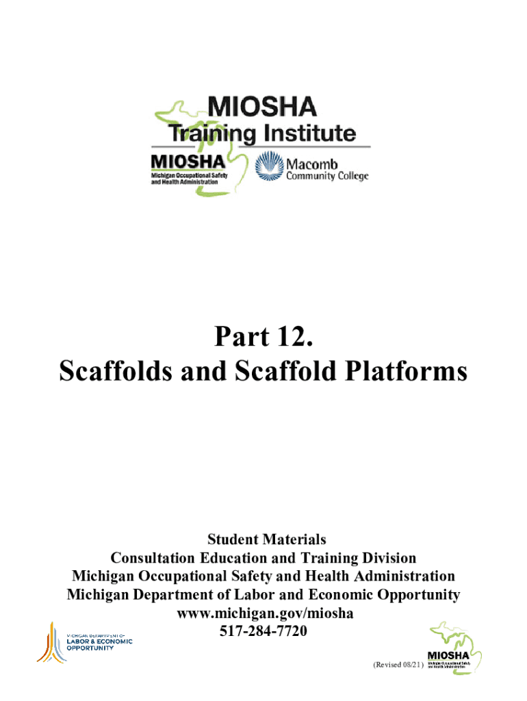 Part 12. Scaffolds and Scaffold PlatformsStudent Materials Consultation Education and Training Division Michigan Occupational Safety and Health Administration Michigan Department of Labor and Economic