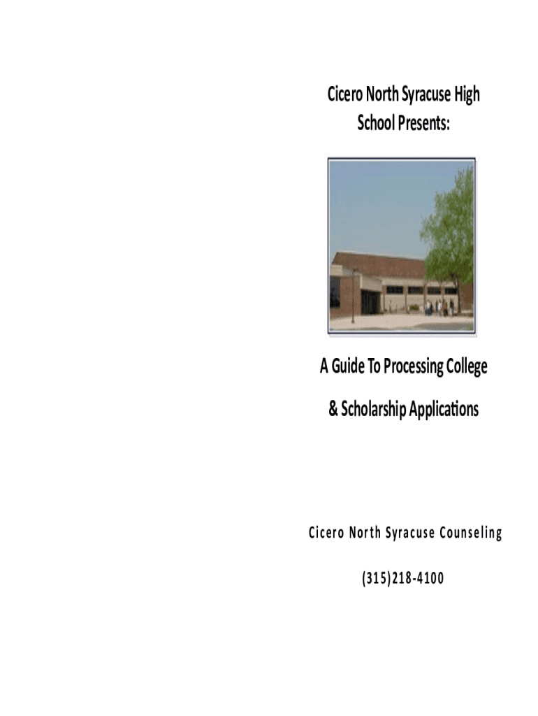 Cicero North Syracuse High School Presents:A Guide To Processing College & Scholarship Applications Cicero North Syracuse Counseling (315)2184100Your Information Regarding GraduationDiploma:LocalRegentsCurrent