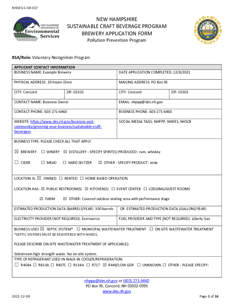Get the free NHDES Sustainable Craft Beverage Recognition Program Sample Application
