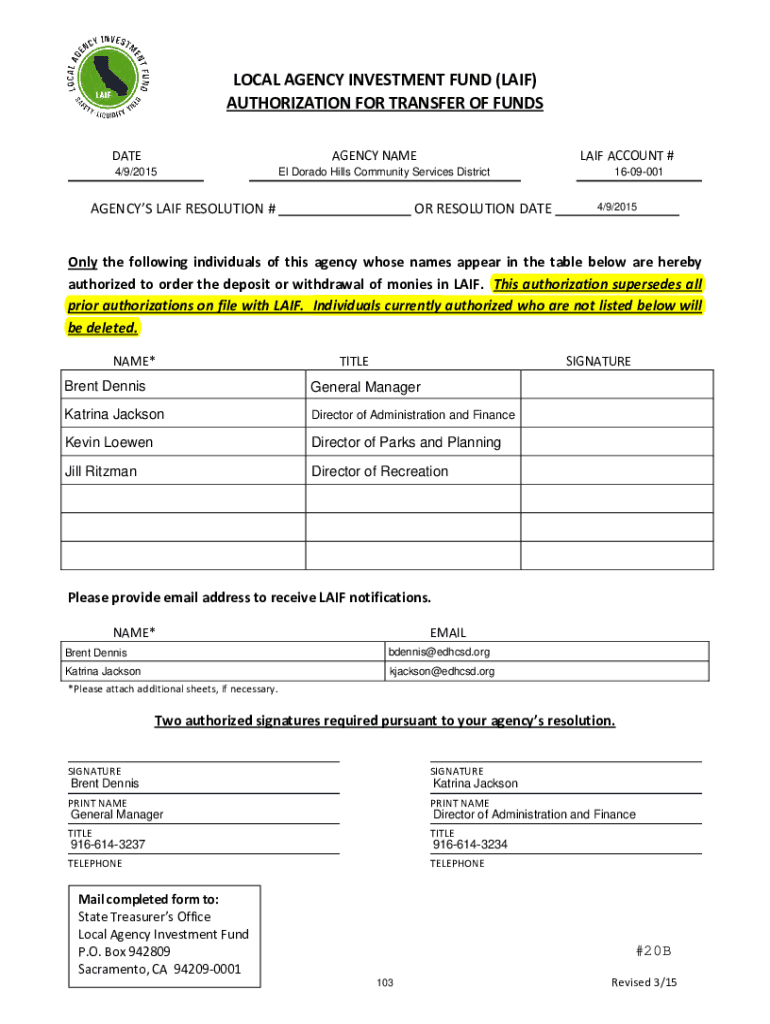 Board of Directors Regular Meeting Agenda1 Thursday, April 9, 2015 6:30 pavilion Meeting Room 1021 Harvard Way El Dorado Hills, CA 95762 916/9336624 or www.edhcsd.orgEstab: May 21, 1962Wayne Lowery,