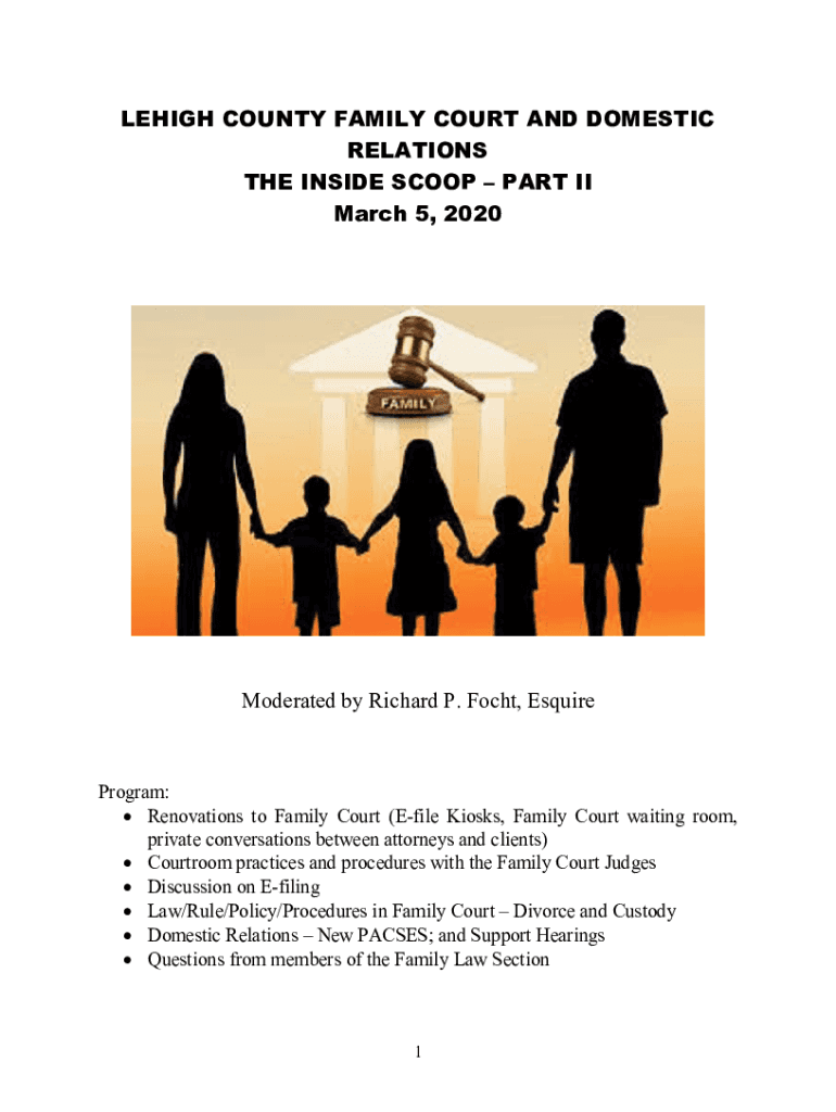 LEHIGH COUNTY FAMILY COURT AND DOMESTIC RELATIONS THE INSIDE SCOOP PART II March 5, 2020Moderated by Richard P. Foch, EsquireProgram: Renovations to Family Court (File Kiosks, Family Court waiting