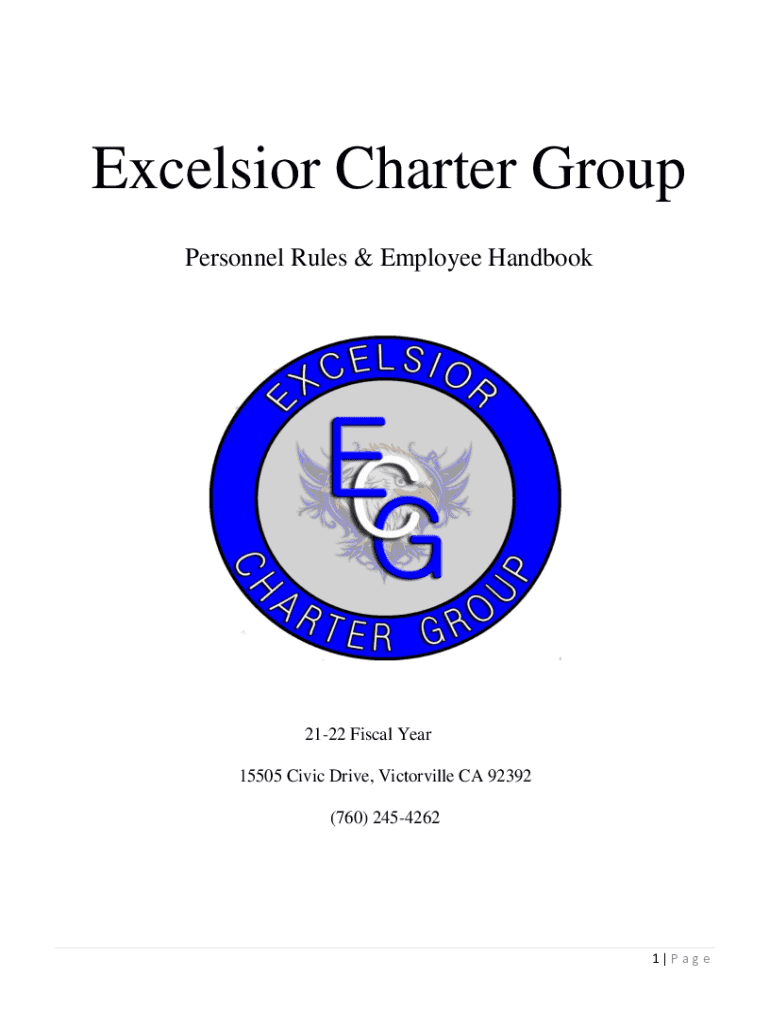 Excelsior Charter Group Personnel Rules & Employee Handbook2122 Fiscal Year 15505 Civic Drive, Victorville CA 92392 (760) 24542621×Vegetable of Contents I. Introduction...............................................................................................................................................................