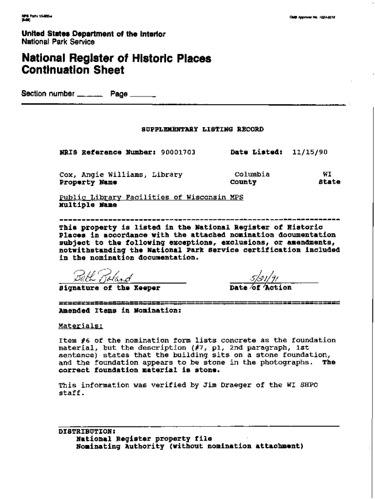NW Form 10900×0 MB /y×no Ho. 10244018United States Department of the Interior National Park ServiceNational Register of Historic Places Continuation Sheet Section number ___ Page ___SUPPLEMENTARY