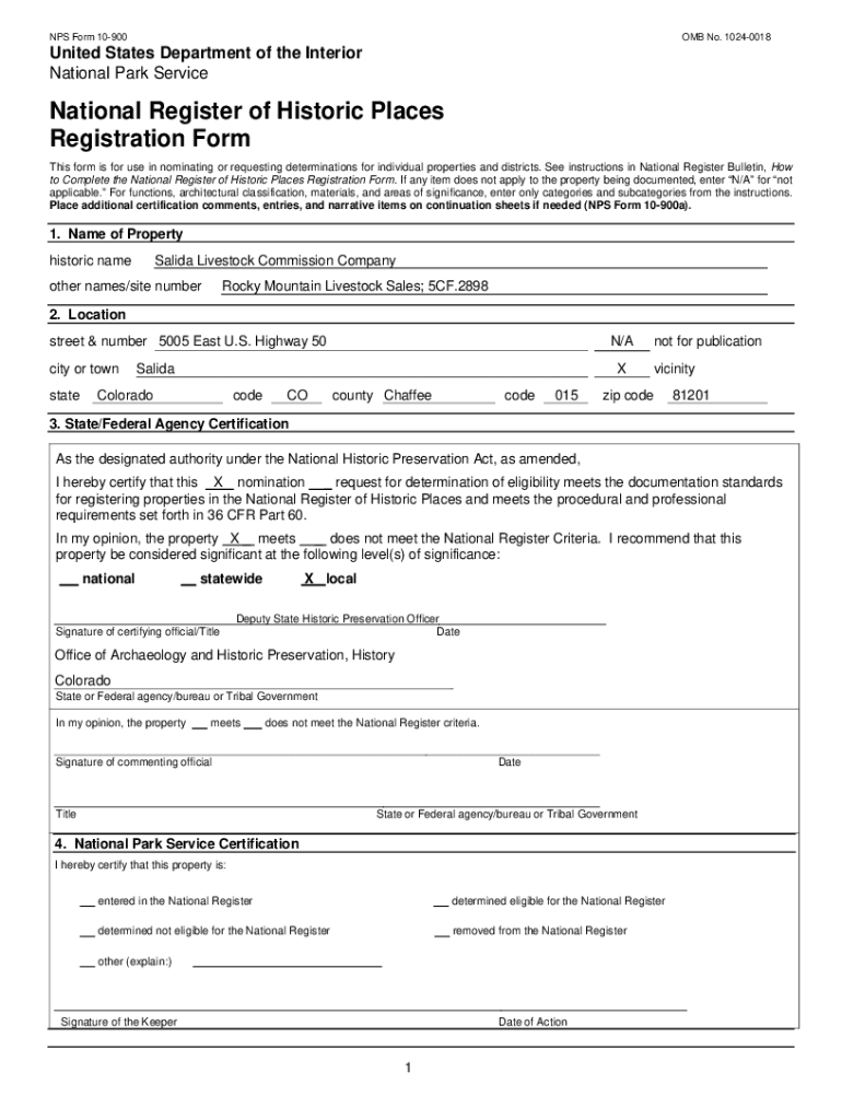 NPS Form 10900OMB No. 10240018United States Department of the Interior National Park ServiceNational Register of Historic Places Registration Form This form is for use in nominating or requesting