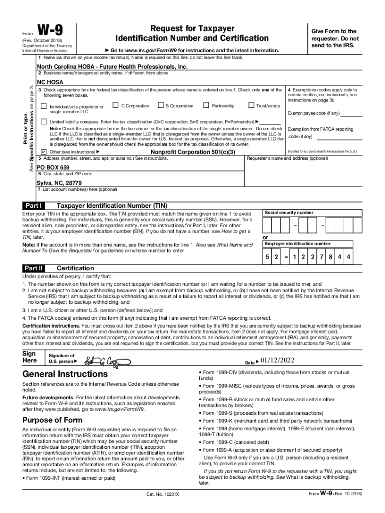Download the Form W-9 from the NCHOSAORG website (nchosa.org/wp-content/uploads/form-w-9).