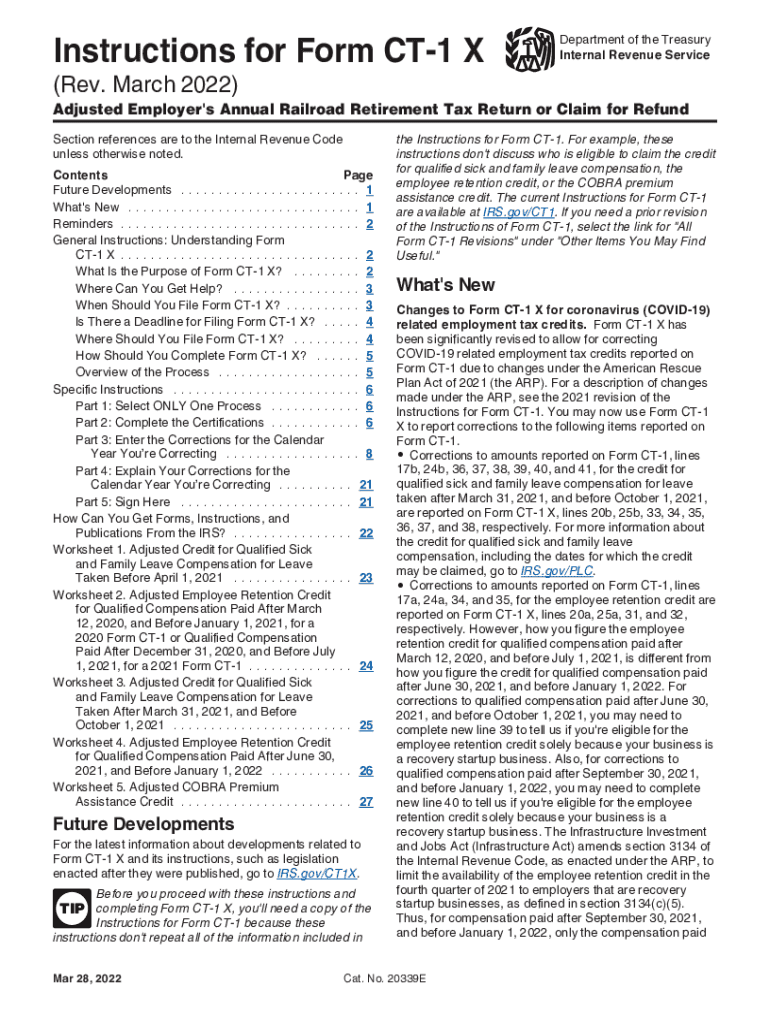 Instructions for Form CT1 Department of the Treasury Internal Revenue Service(Rev. March 2022)Adjusted Employer\'s Annual Railroad Retirement Tax Return or Claim for Refund Section references are