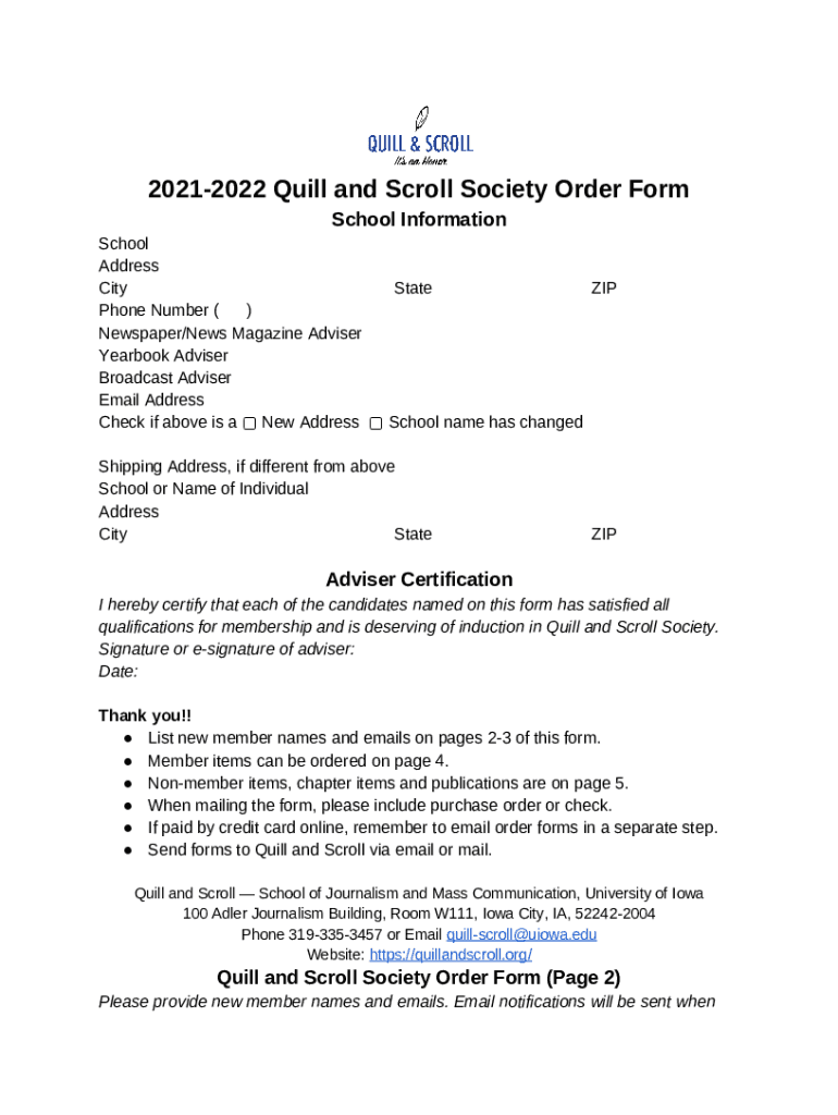 Frequently asked questions about the form quillandscroll.orgindividual-member-order-Individual Member Order - Quill and Scroll