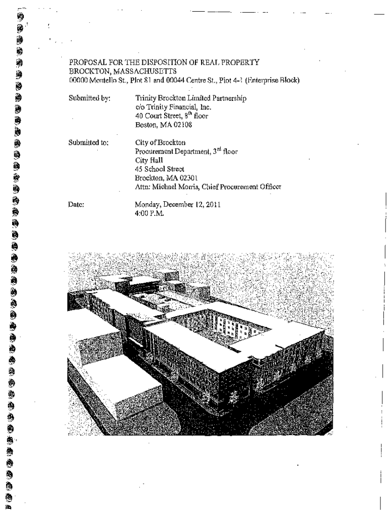 PROPOSAL FOR THE DISPOSITION OF REAL PROPERTY BROCKTON, MASSACHUSETTS 00000 Costello St., Plot 81 and 00044 Center St., Plot 41 (Enterprise Block) Submitted by:Trinity Brockton Limited Partnership