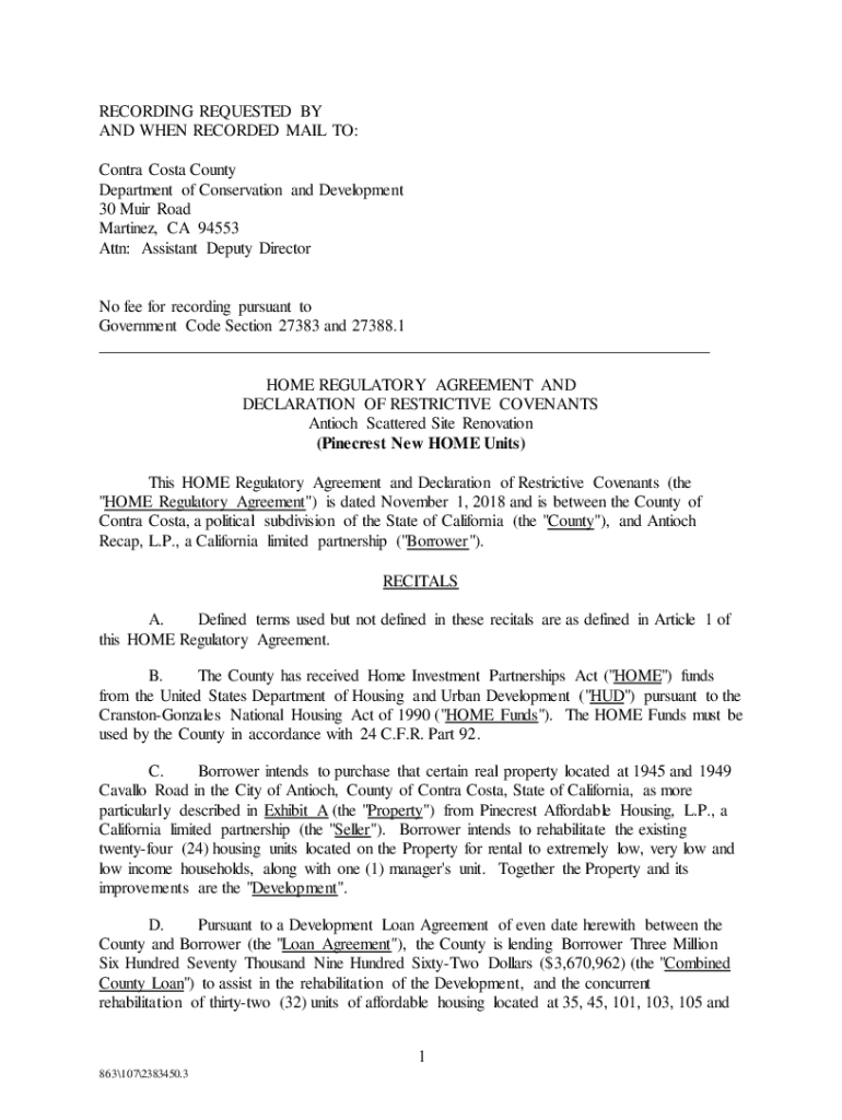 RECORDING REQUESTED BY AND WHEN RECORDED MAIL TO: Contra Costa County Department of Conservation and Development 30 Muir Road Martinez, CA 94553 Attn: Assistant Deputy Director No fee for recording