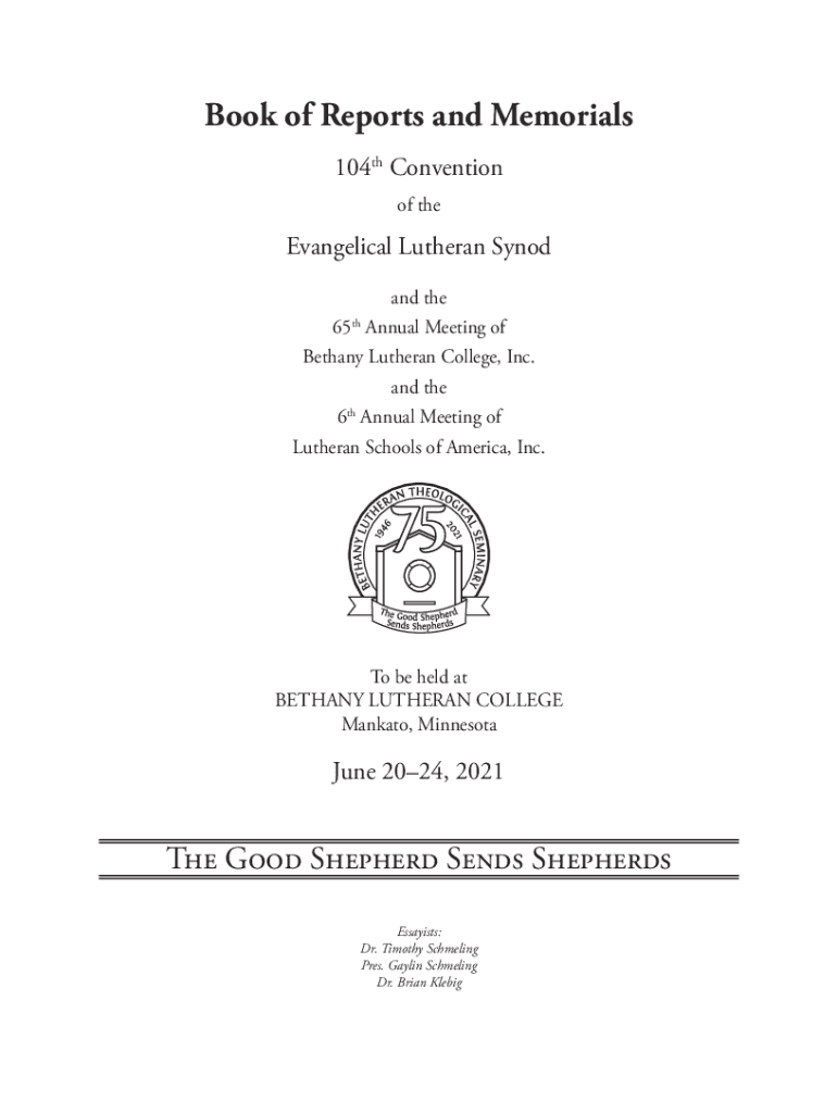 Book of Reports and Memorials 104th Convention of the Evangelical Lutheran Synod and the 65th Annual Meeting of Bethany Lutheran College, Inc. and the 6th Annual Meeting of Lutheran Schools of America,