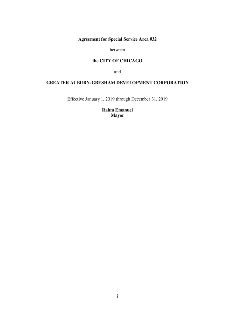 Agreement for Special Service Area #32 between the CITY OF CHICAGO and GREATER AUBURNGRESHAM DEVELOPMENT CORPORATIONEffective January 1, 2019, through December 31, 2019, RAM Emanuel MayoriAGREEMENTSPECIFIC