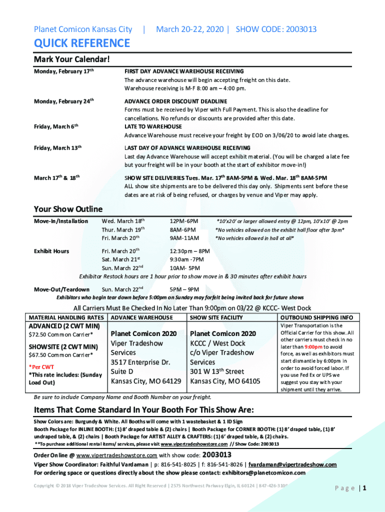 Planet COMECON Kansas Bisquick REFERENCE×March 2022, 2020 | SHOW CODE: 2003013Mark Your Calendar! Monday, February 17thFIRST DAY ADVANCE WAREHOUSE RECEIVING The advance warehouse will begin accepting