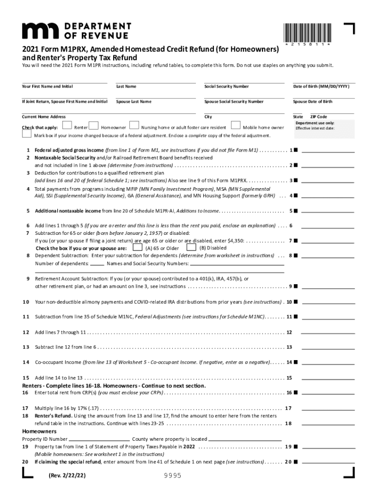 and Renter\'s Property Tax Refund×215811×You will need the 2021 Form M1PR instructions, including refund tables, to complete this