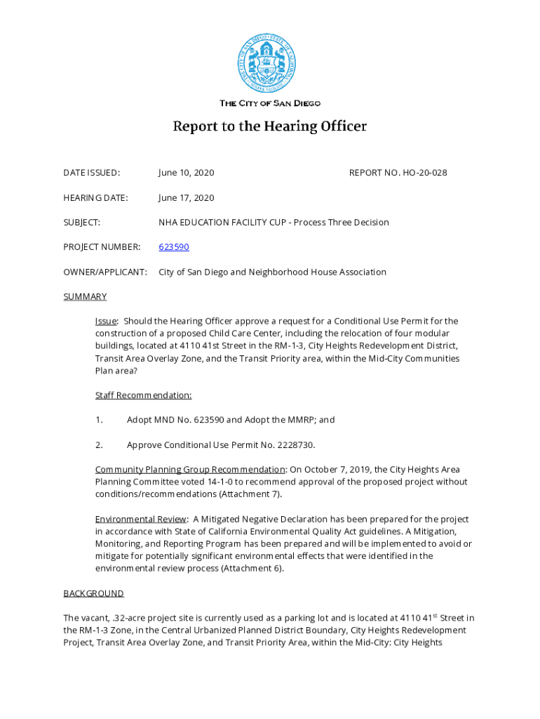 DATE ISSUED:June 10, 2020REPORT NO. HO20028HEARING DATE:June 17, 2020SUBJECT:NHA EDUCATION FACILITY CUP Process Three DecisionPROJECT NUMBER:623590OWNER/APPLICANT:City of San Diego and Neighborhood