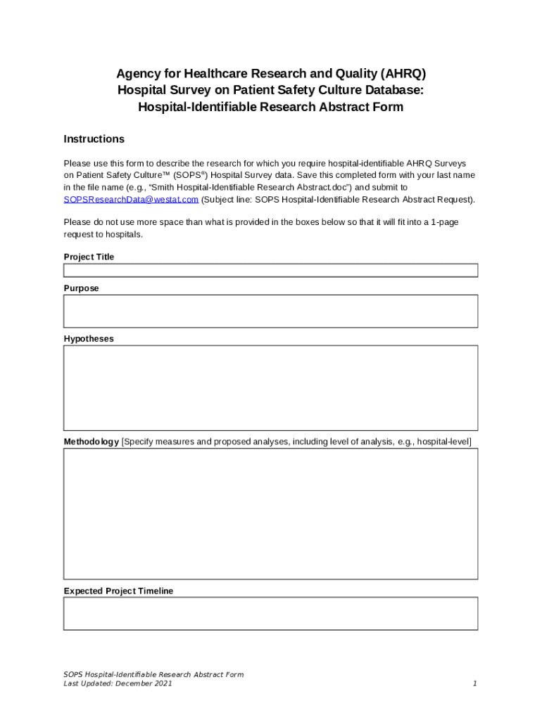Hospital Survey on Patient Safety Culture Database. to Request Hospital-Identifiable SOPS Data for Research template instructions