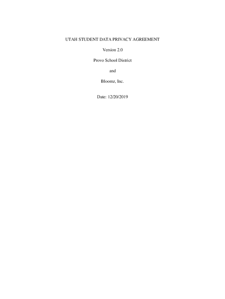 UTAH STUDENT DATA PRIVACY AGREEMENT Version 2.0 Provo School District and Bloom, Inc. Date: 12/20/2019This Utah Student Data Privacy Agreement (DPA) is entered into by and between the Provo School