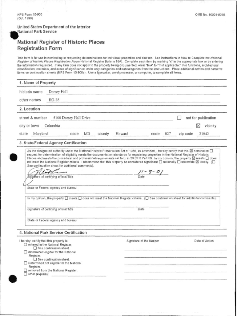 NPS Form 10900 (Oct. 1990)OMB No. 100240018United States Department of the Interior national Park ServiceNational Register of Historic Places Registration Form This form is for use in nominating or