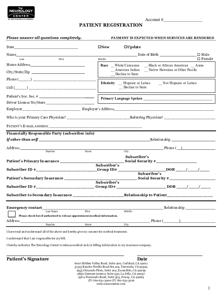 PATIENT REGISTRATION Please answer all questions completely. Account #PAYMENT IS EXPECTED WHEN SERVICES ARE RENDEREDDateNewUpdateNameDate of Birth The Nastiest Male FemaleMiddleHome Addressable __White/Caucasian