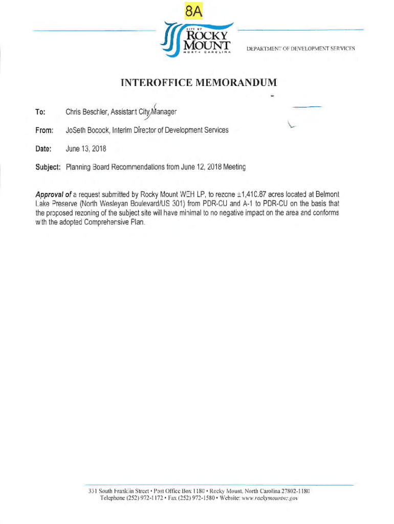 BAD EPA RECENT OF DEVELOP ENT SERVICESINTEROFFICE MEMORANDUM To:Chris Beecher, Assistant CanagerFrom:Joseph Book, Interim director of Development ServicesDate:June 13, 2018Subject: Planning Board