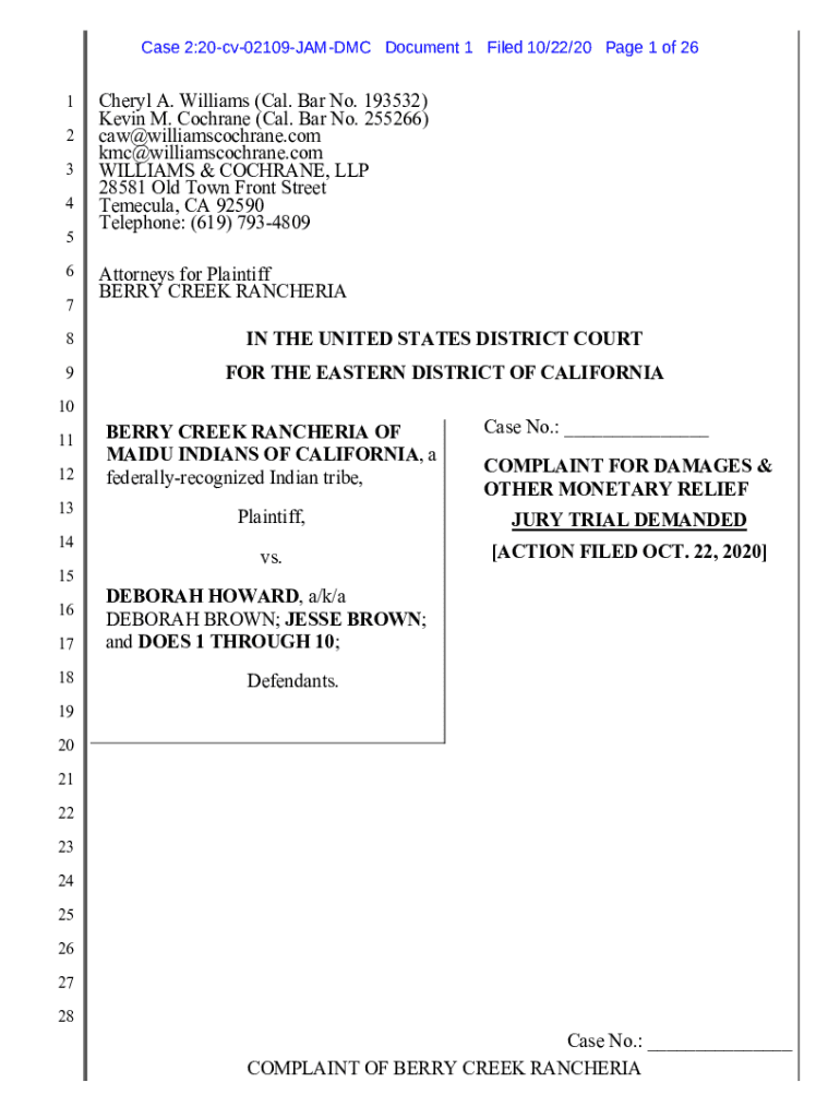 Case 2:20cv02109JAMDMC Document 1 Filed 10/22/20-Page 1 of 26 1 2 3 4 5 6 7Cheryl A. Williams (Cal. Bar No. 193532) Kevin M. Cochrane (Cal. Bar No. 255266) caw×williamscochrane.com km×williamscochrane.com