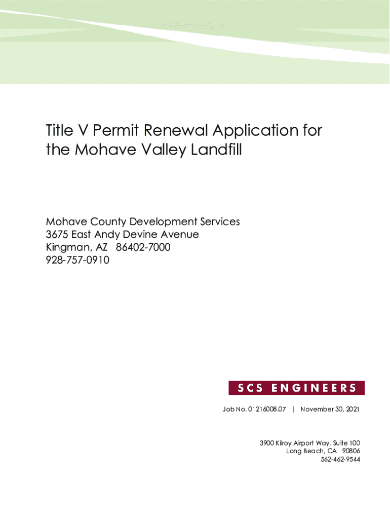 Title V Permit Renewal Application for the Mohave Valley Landfill Mohave County Development Services 3675 East Andy Devine Avenue Kinsman, AZ 864027000 9287570910Job No. 01216008.07 | November 30,