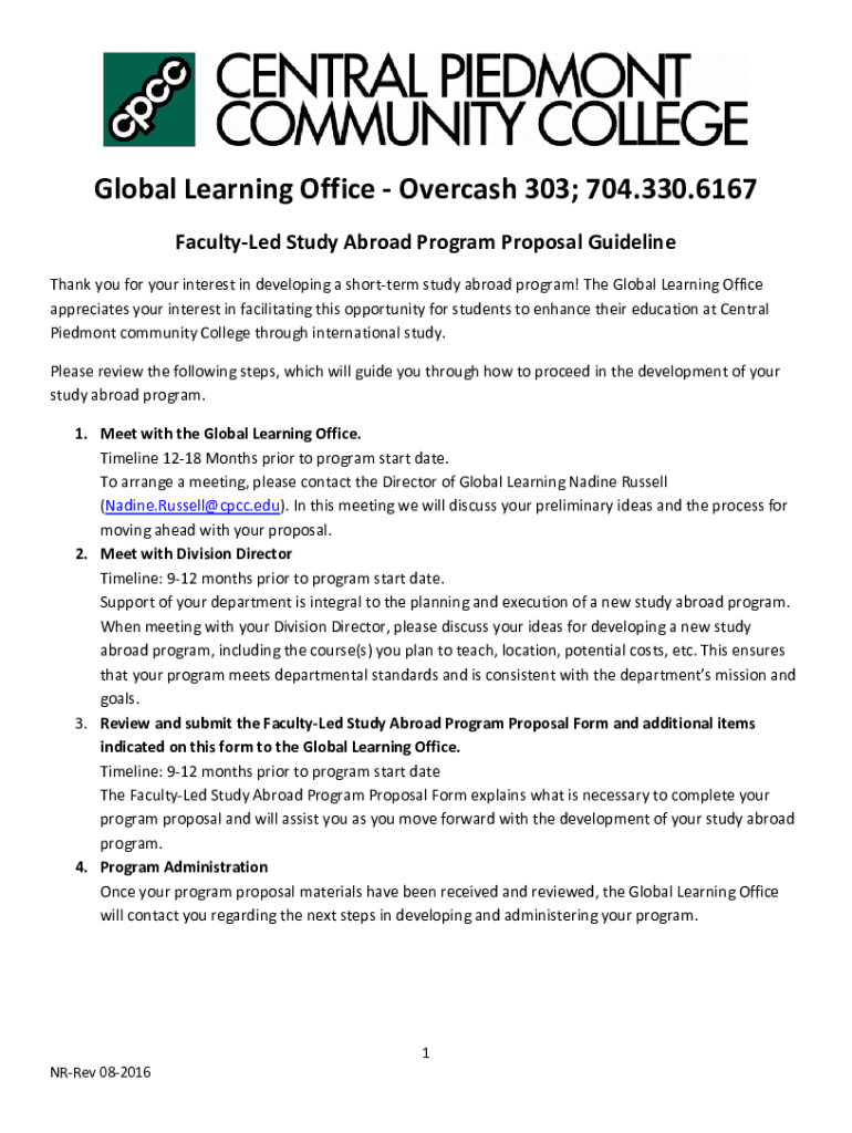 Global Learning Office Overcast 303; 704.330.6167 Faculty Study Abroad Program Proposal Guideline Thank you for your interest in developing a short term study abroad program! The Global Learning Office