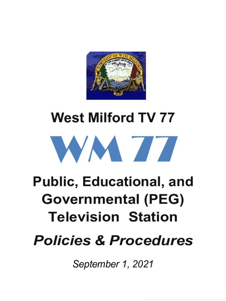 West Milford TV 77Public, Educational, and Governmental (PEG) Television Station Policies & Procedures September 1, 2021TABLE OF CONTENTS Introduction ........................................................................................................................................