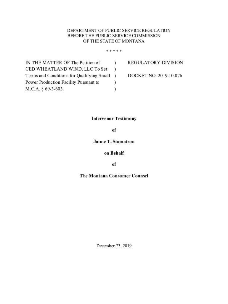 DEPARTMENT OF PUBLIC SERVICE REGULATION BEFORE THE PUBLIC SERVICE COMMISSION OF THE STATE OF MONTANA *****IN THE MATTER OF The Petition of CED WETLAND WIND, LLC To Set Terms and Conditions for Qualifying