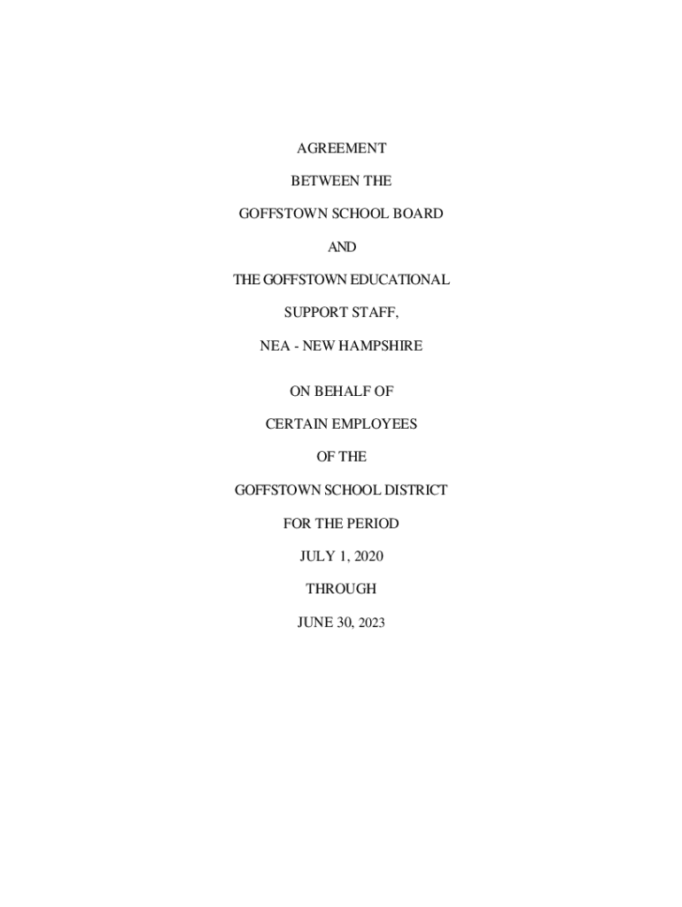 AGREEMENT BETWEEN THE GOFFSTOWN SCHOOL BOARD AND THE GOFFSTOWN EDUCATIONAL SUPPORT STAFF, NEA NEW HAMPSHIRE ON BEHALF OF CERTAIN EMPLOYEES OF THE GOFFSTOWN SCHOOL DISTRICT FOR THE PERIOD JULY 1, 2020,