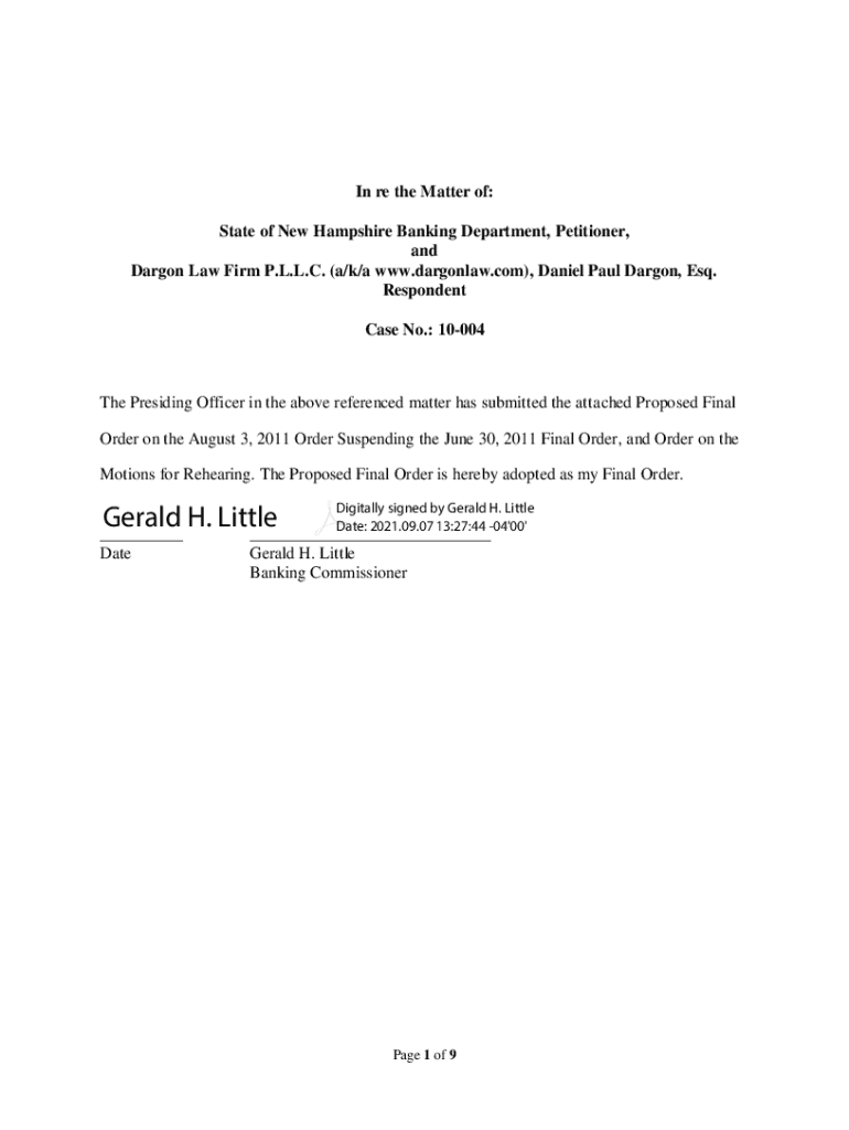 Get the free 1 State of New Hampshire Banking Department In re the ...