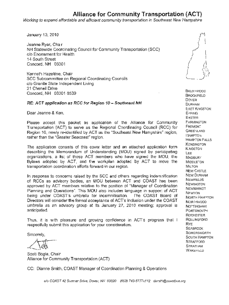 Alliance for Community Transportation (ACT) Working to expand affordable and efficient community transportation in Southeast New HampshireSubmission statewide Coordinating Council for Community Transportation