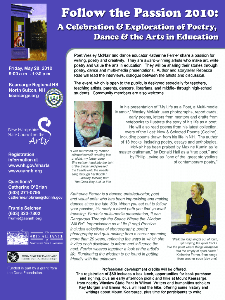 Follow the Passion: Program Registration Form Friday, May 28, 2010, 9 am Rearrange Regional High School, North Sutton, NH Please fill out and sign this form and mail it with your check, made out to