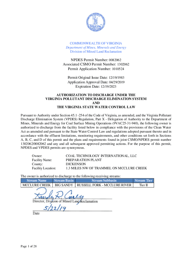 Get the free NPDES Permit Number: 0082062 Associated CSMO Permit Number ...
