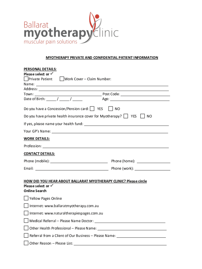 CRYOTHERAPY PRIVATE AND CONFIDENTIAL PATIENT INFORMATIONPERSONAL DETAILS:Please select or Private Paintwork Cover Claim Number:Name:___Address: ___Town: ___ Post Code: ___Date of Birth: ___ / ___