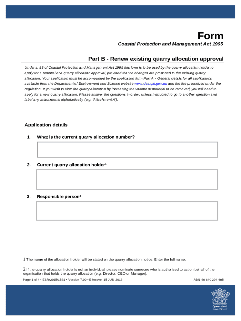 How to fill environment.des.qld.gov.audataassetsPart B - Renew existing quarry allocation approval word template