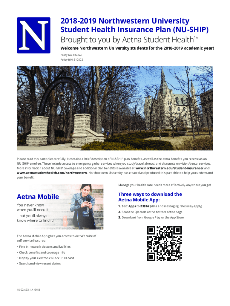 20182019 Northwestern University Student Health Insurance Plan (NUS HIP) Brought to you by Aetna Student Health SM Welcome Northwestern University students for the 20182019 academic year! Policy No.