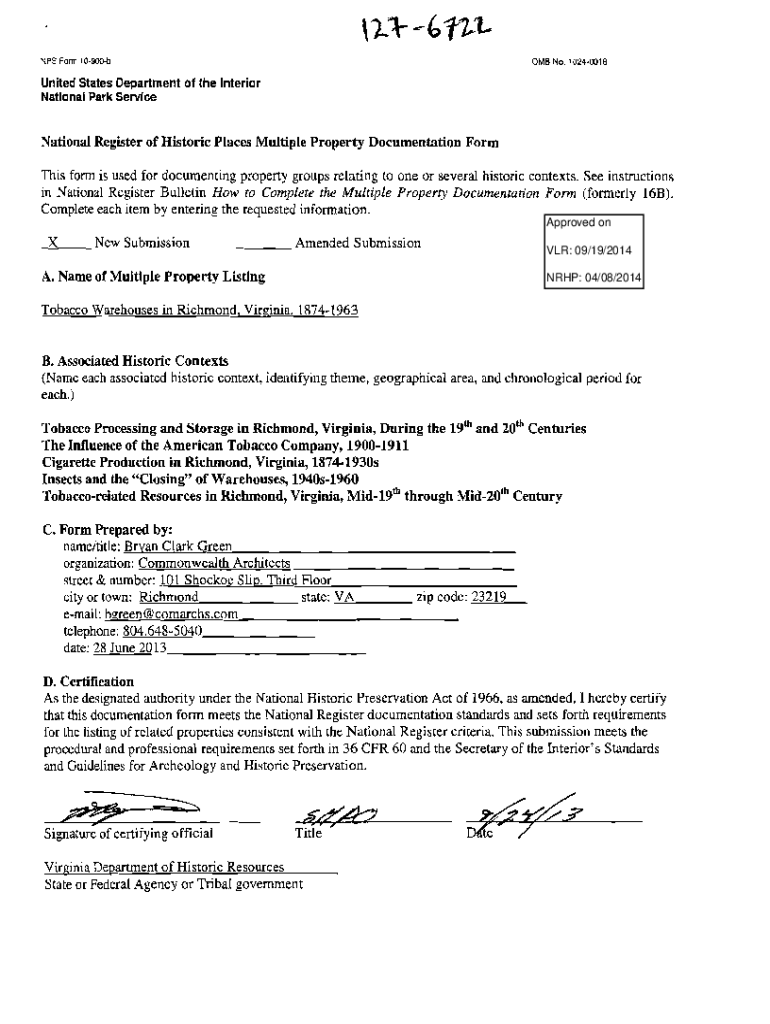 NPS Form 10900bUnited States Department of the Interior National Park ServiceNational Register of Historic Places Multiple Property Documentation Form This form is used for documenting property groups