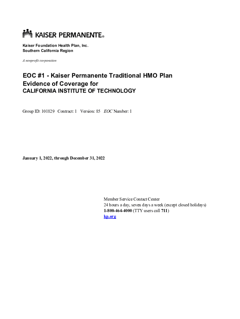 Kaiser Foundation Health Plan, Inc. Southern California Region A nonprofit corporation #1 Kaiser Permanent Traditional HMO Plan Evidence of Coverage for CALIFORNIA INSTITUTE OF TECHNOLOGYGroup ID: