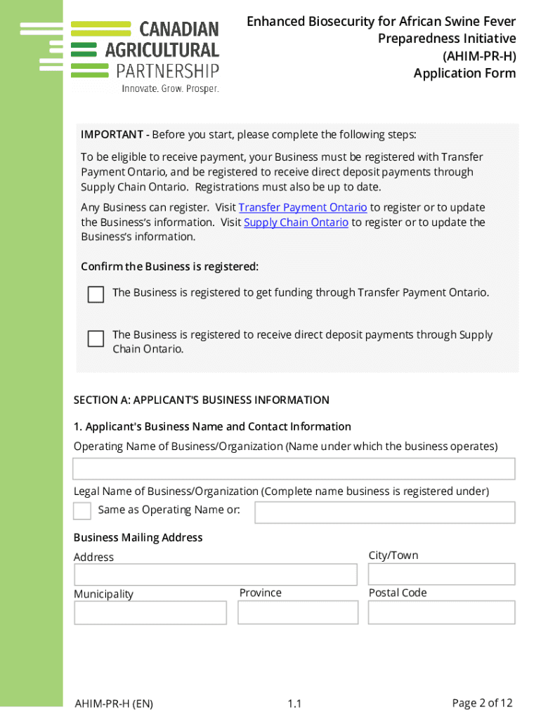 Get the free Enhanced Biosecurity for African Swine Fever Preparedness Initiative (AHIM-PR-H). En...