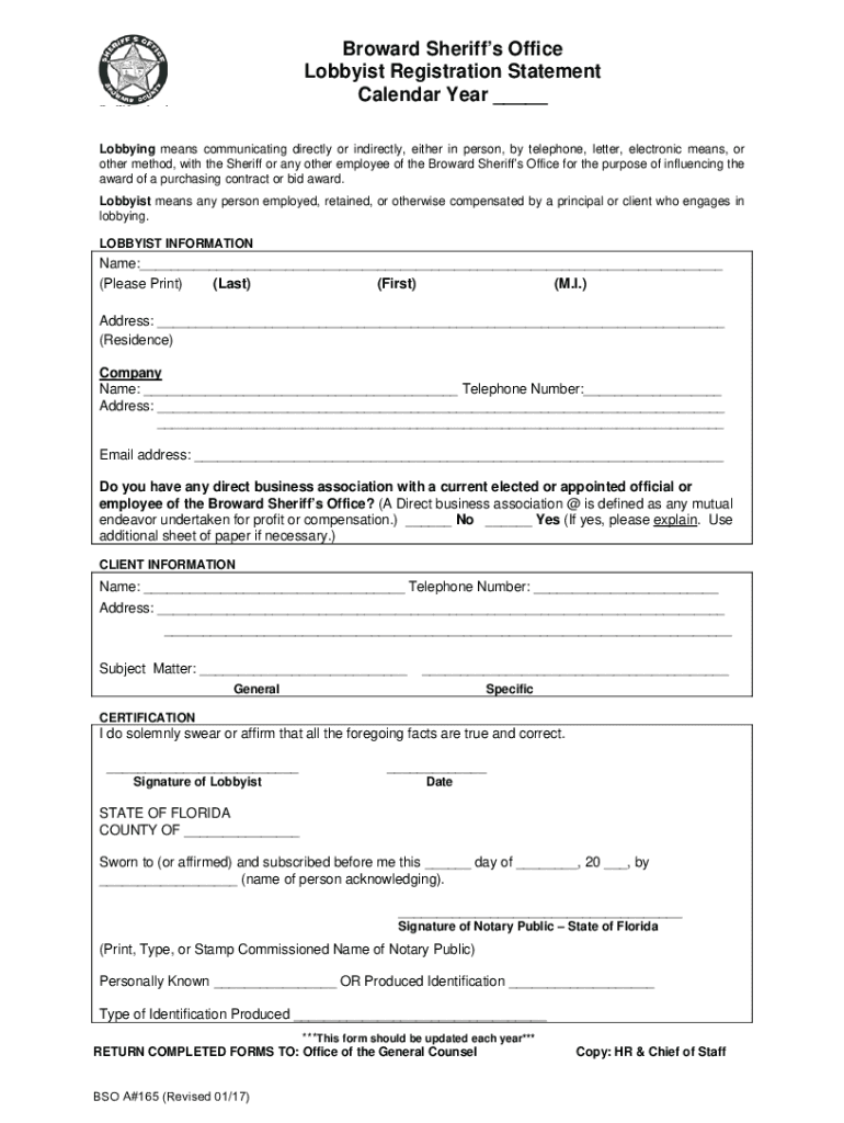 Get the free www.sheriff.orgAdministrationDocumentsBroward Sheriffs Office Lobbyist Registration ...