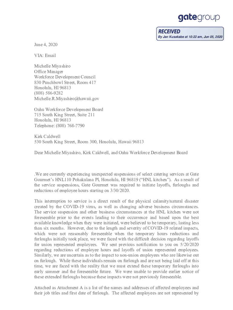 By Jan Lusaka at 10:22 am, Jun 05, 2020June 4, 2020 VIA: Email Michelle Miyashiro Office Manager Workforce Development Council 830 Punch bowl Street, Room 417 Honolulu, HI 96813 (808) 5869282 Michelle.