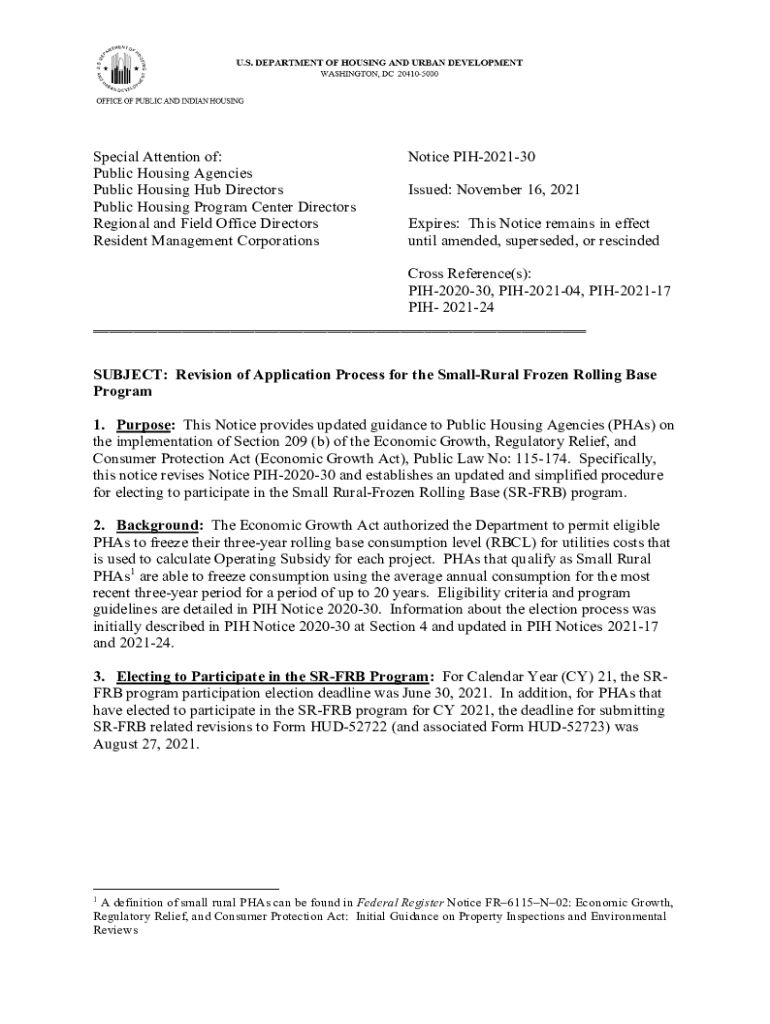 Special Attention of: Public Housing Agencies Public Housing Hub Directors Public Housing Program Center Directors Regional and Field Office Directors Resident Management CorporationsNotice PIH202130