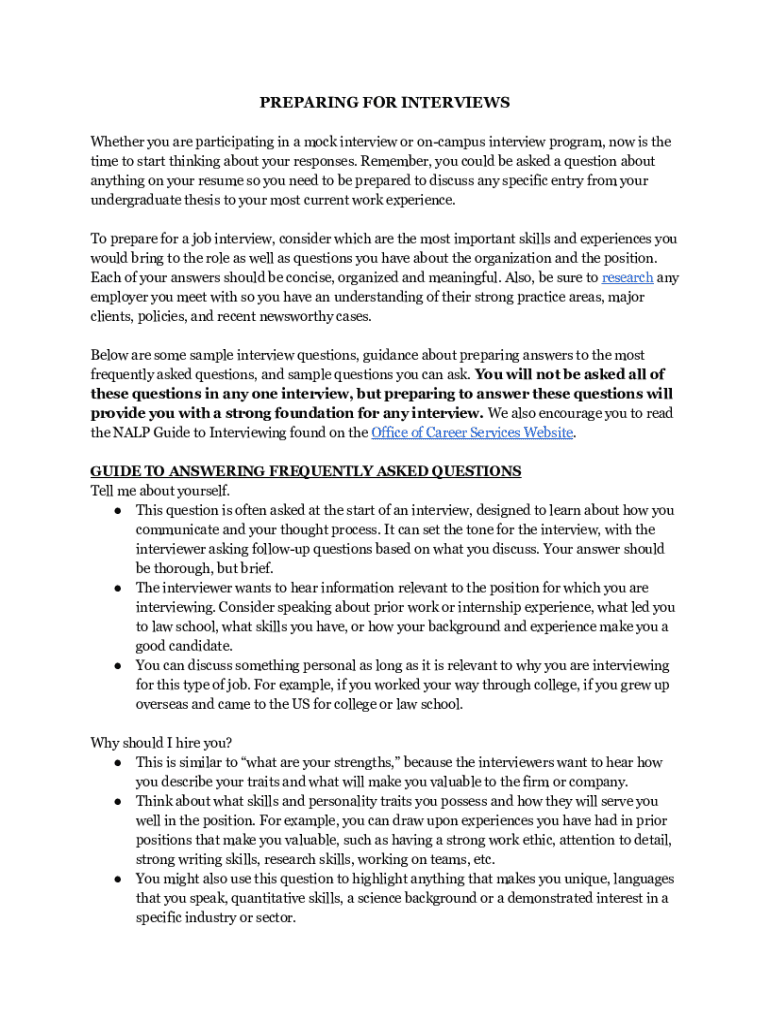 PREPARINGFORINTERVIEWS Whether you are participating in a mock interview or on campus interview program, now is the time to start thinking about your responses. Remember, you could be asked a question