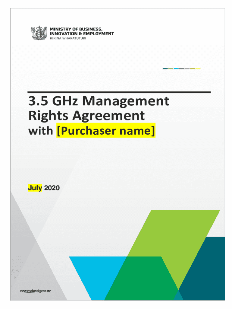 3.5 GHz Management Rights Agreement with [Purchaser name×July 20201Document Control Version number 1.0 2.0Date of publicationSummary of changes10 February 2020 24 February 2020MBIE DRAFT RELEASE