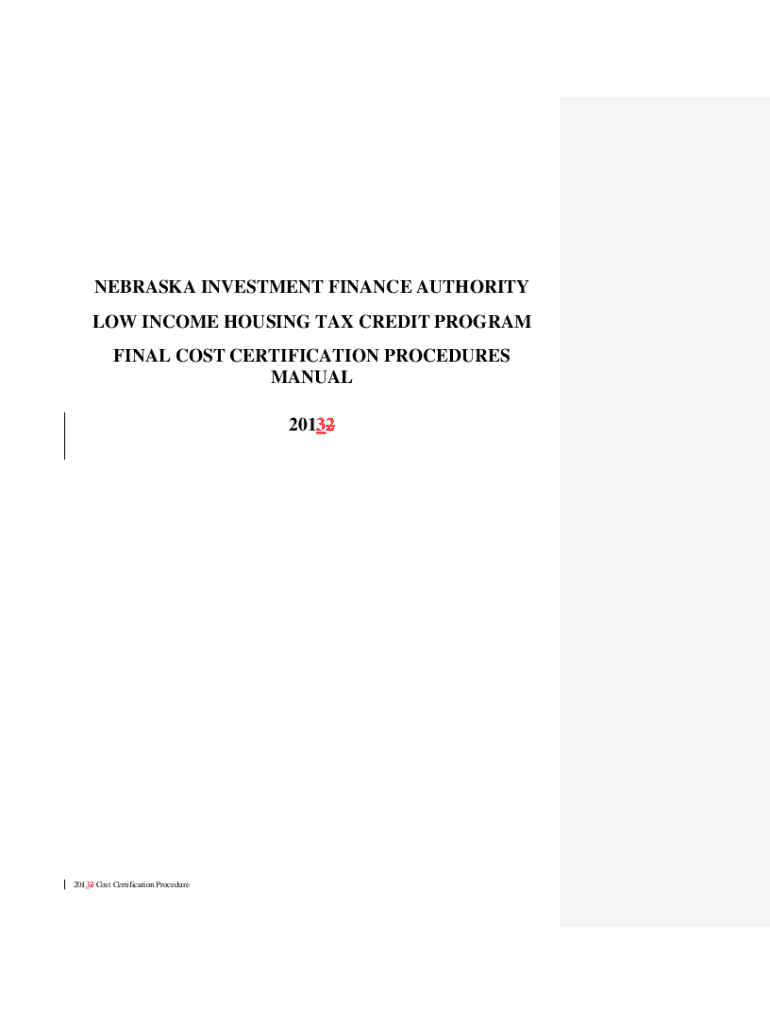 NEBRASKA INVESTMENT FINANCE AUTHORITY LOW INCOME HOUSING TAX CREDIT PROGRAM FINAL COST CERTIFICATION PROCEDURES MANUAL 2013220132 Cost Certification Procedure20132 FINAL COST CERTIFICATION PROCEDURES