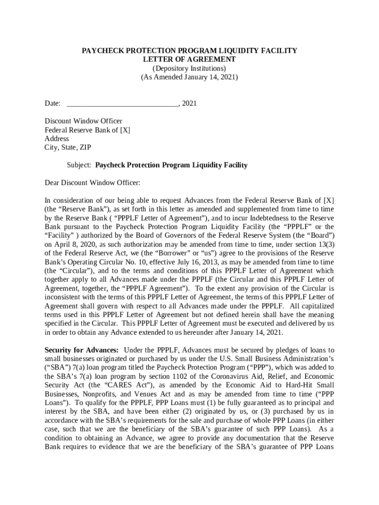What is www.frbdiscountwindow.orgPagesGeneralLetter of Agreement for PPPLF Form?