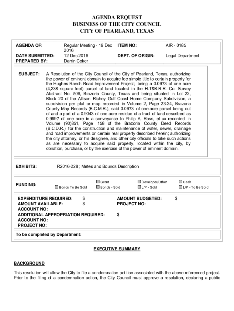 Get the free www.pearlandtx.govhomeshowpublisheddocumentAGENDA REQUEST BUSINESS OF THE CITY COUNC...