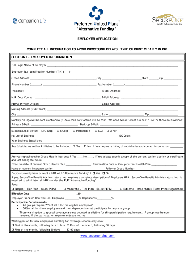 EMPLOYER APPLICATION COMPLETE ALL INFORMATION TO AVOID PROCESSING DELAYS. TYPE OR PRINT CLEARLY IN INK.SECTION I EMPLOYER INFORMATION Full Legal Name of Employer ___ Employer Tax Identification Number